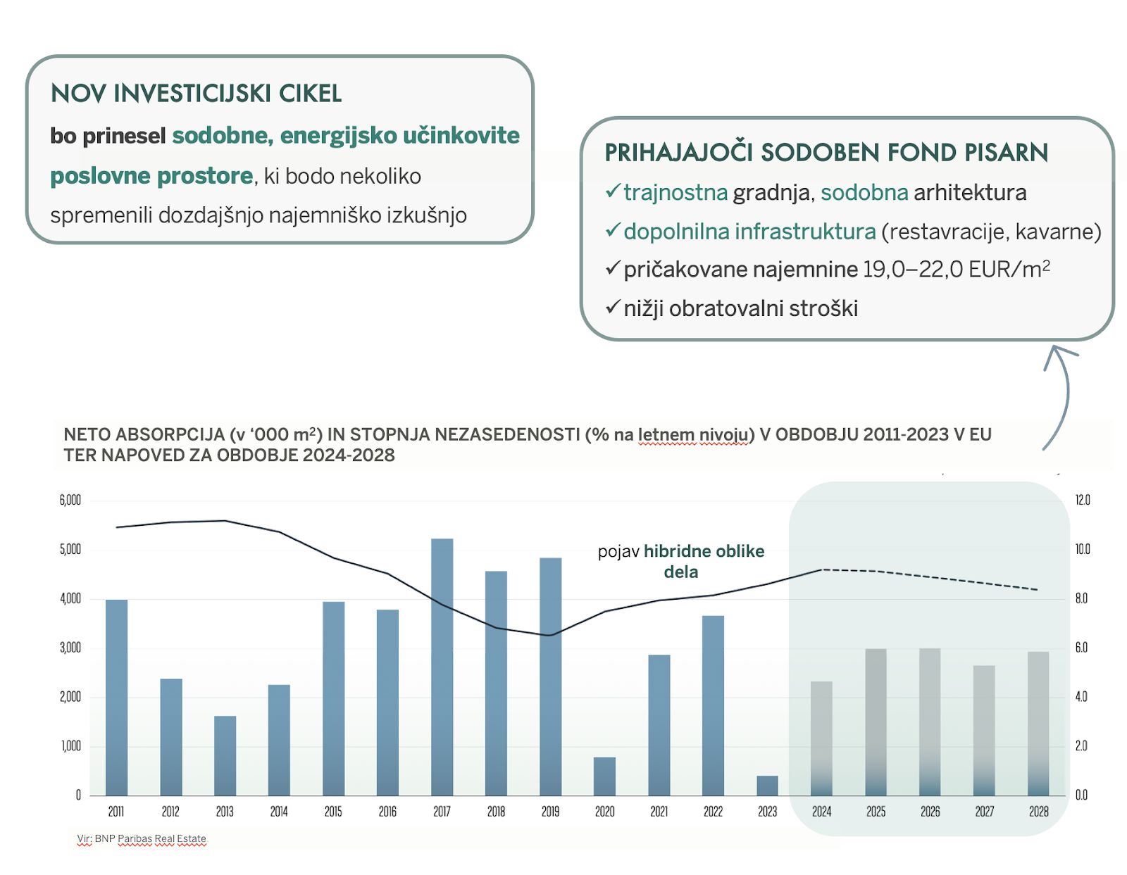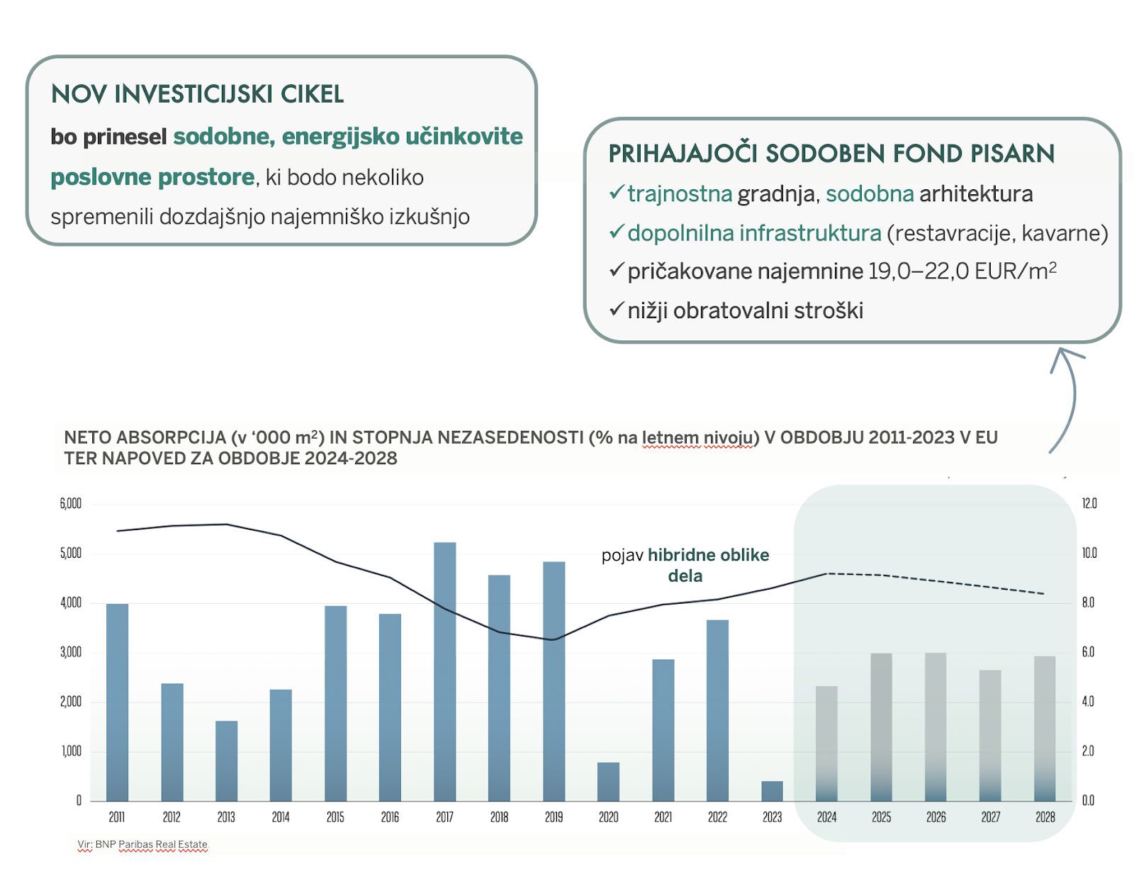 V prihajajočih letih bo na trgu okoli 100.000 m2 novih sodobnih poslovnih površin, ki bodo nekoliko predrugačile obstoječi star fond pisarn in spremenile vrednostne okvirje najemnin.