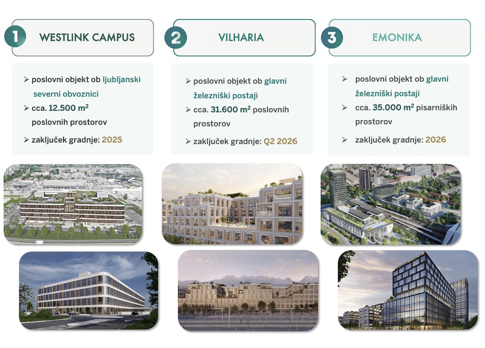 Zgledi iz tujine kažejo na iskanje dodane vrednosti s strani investitorjev, ki se vse bolj nagibajo k gradnji trajnostnih, energetsko učinkovitih stavb na ključnih lokacijah s potencialom za povečanje dohodkov s strani najemnin ob učinkovitem upravljanju nepremičnine.