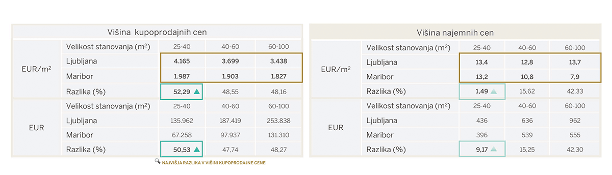 Razlike v kupoprodajnih in najemnih cenah rabljenih stanovanj