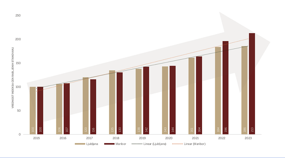Cene stanovanj so v preteklih letih najbolj zrasle v Mariboru, po poročanju GURS-a je bila ta rast od drugega polletja 2020, do 1. polletja 2023 kar 46-odstotna. V Ljubljani so v enakem časovnem obdobju cene rabljenih stanovanj zrasle za 28 %.